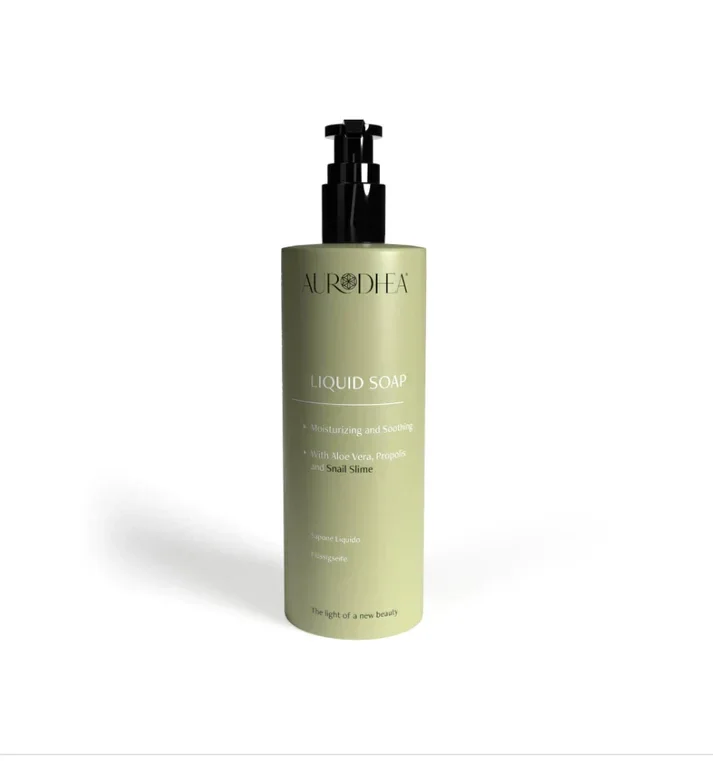 Die Aurodhea Flüssigseife mit Schneckenschleim reinigt die Hände sanft und hinterlässt ein frisches und gepflegtes Hautgefühl. Der enthaltene Schneckenschleim hilft, die Haut wieder ins Gleichgewicht zu bringen: Die Haut wird mit Feuchtigkeit versorgt und fühlt sich seidig und weich an. Bei täglicher Anwendung schützt die Seife die Hände vor äußeren Einflüssen und mildert Rötungen und Pigmentflecken. Sie enthält außerdem Aloe Vera, die beruhigende und feuchtigkeitsspendende Eigenschaften besitzt, sowie den Propolis-Extrakt, der antibakterielle Eigenschaften aufweist.