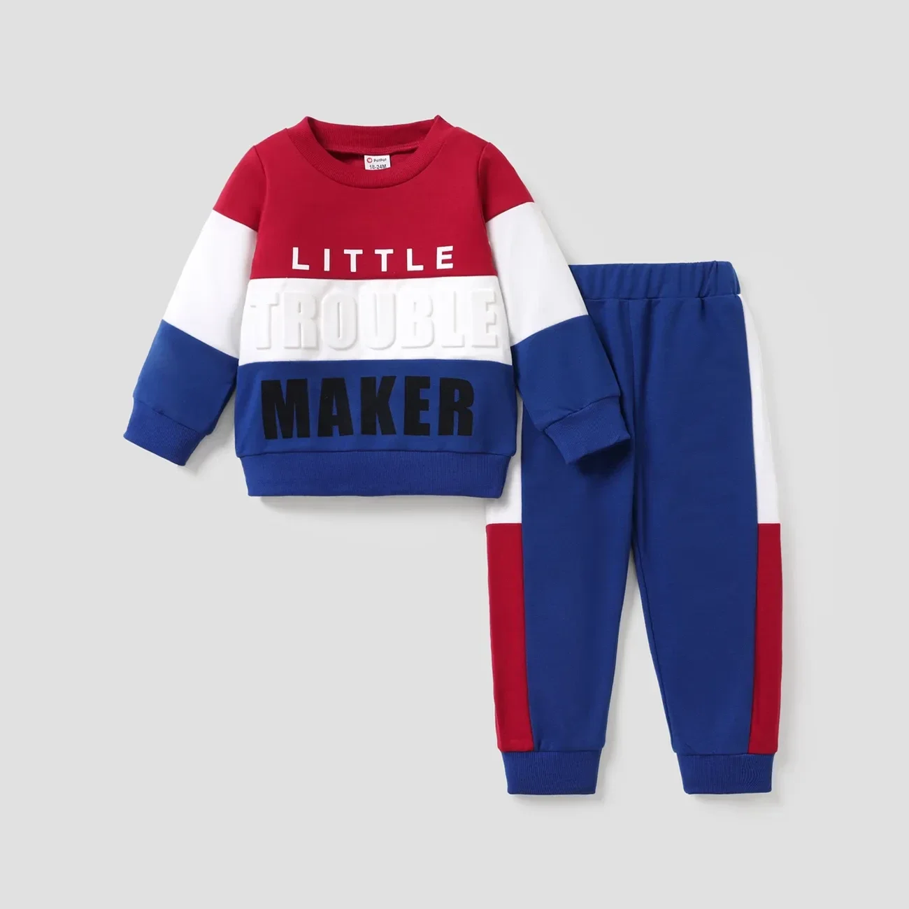 Trendiges und bequemes 2-teiliges Set aus Sweatshirt und Hose für Kleinkinder, mit einzigartigem Buchstaben-Print und Farbblock-Design, perfekt für verspielte und stilbewusste Kleine.